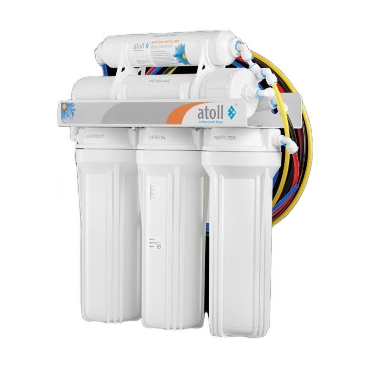 - минерализатором atoll GS-10CAL/RO — постфильтрация. Дополнительная очистка фильтром на основе гранулированного кокосового активированного угля, обогащенного кальцитом.